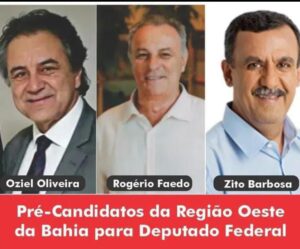 Atualmente, a região Oeste da Bahia apresenta três nomes que se colocam como pré-candidatos à vaga de deputado federal. Entre eles estão o ex-prefeito de Luís Eduardo Magalhães, Oziel Oliveira, filiado ao PSD; o ex-prefeito de Barreiras, Zito Barbosa, representante do DEM; e o agricultor e empresário Rogério Faedo, do PL.