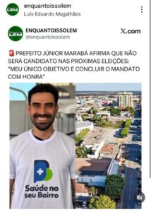 A avaliação nos bastidores é de que Júnior Marabá percebeu a dificuldade de conquistar apoio suficiente para viabilizar sua candidatura em um cenário dominado por nomes ligados ao bolsonarismo. Com isso, o prefeito optou por recuar e manter o compromisso de concluir o mandato na prefeitura.