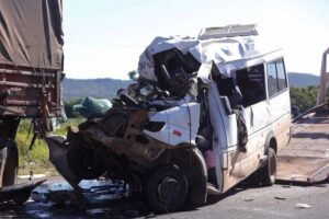 Um grave acidente registrado na madrugada desta terça-feira, 17 de fevereiro de 2026, na BR-020, próximo à divisa entre o Distrito Federal e Formosa, deixou cinco pessoas mortas e 11 feridas. A colisão envolveu uma van que fazia transporte de passageiros saindo de Santa Rita de Cássia, no Oeste da Bahia, com destino a Brasília.