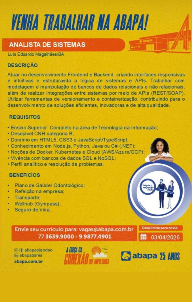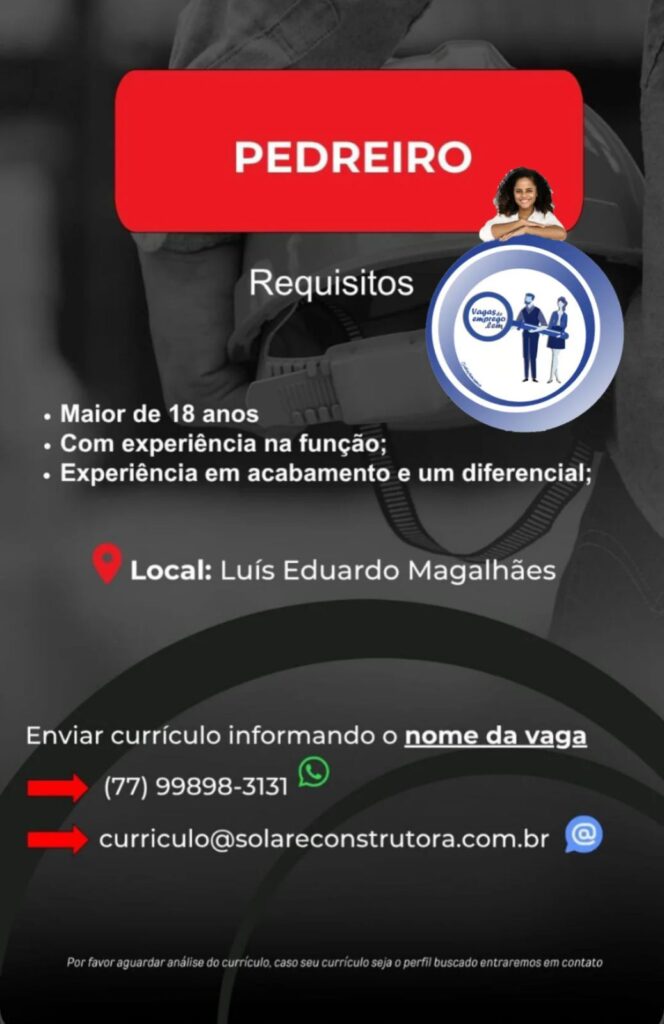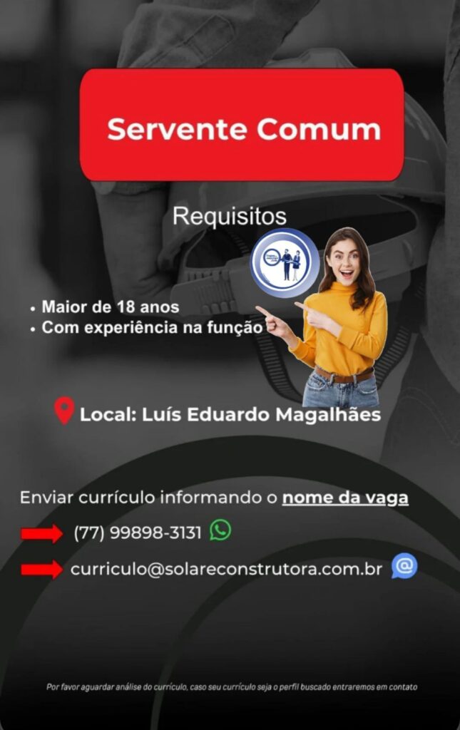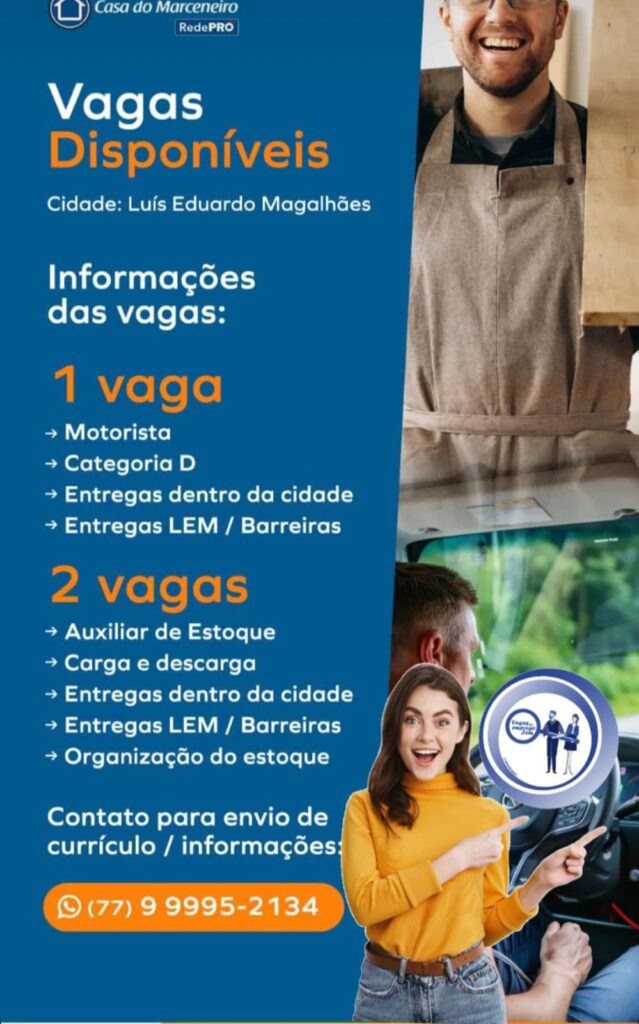abril 10, 2026 Bahia Realidade News Classificados, Vaga de Emprego 0 Facebook 0 Twitter 0 LinkedIn WhatsApp Telegram 0Shares Fonte portal Bahia realidade News Direção geral Roberto Cezar Reportagem Marciel Guedes Tags: #bahia#barreiras#brasilia#LuísEduardoMagalhãe#BarreirasBa#LuísEduardoMagalhães